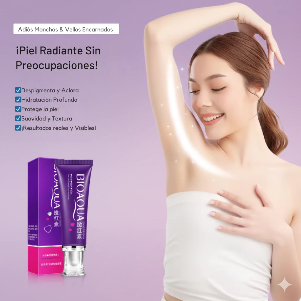 BioAqua ayuda a mejorar el aspecto del tono de la piel, haciéndola lucir más uniforme en zonas sensibles como axilas, labios, zona V, pezones y entrepierna.